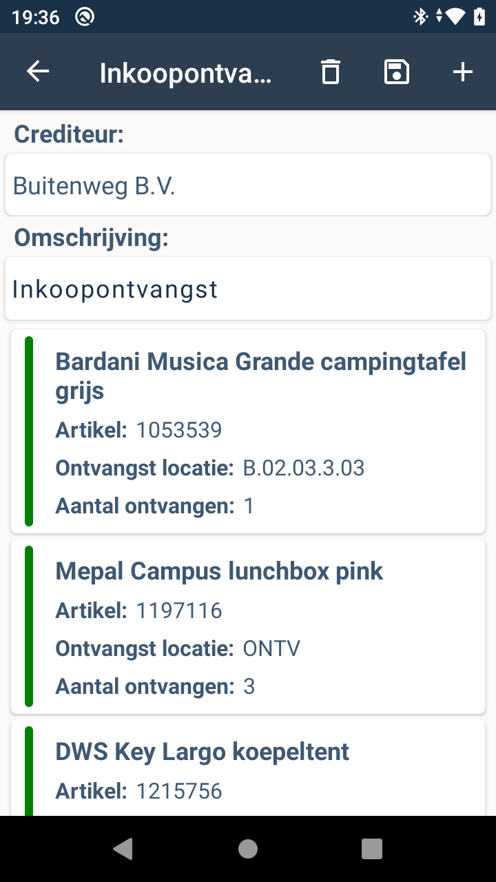 Verwerking van ‘te ontvangen inkooporders’ en ‘te verwerken ontvangsten’ (ontvangstbladzijden). Daarnaast is er een handige filterfunctie waarop gefilterd kan worden op leverancier, referentie (te scannen) en ontvangstdatum. Werk overzichtelijk en gebruiksvriendelijk met inkooporders/ontvangsten en duidelijke inkooporderregels. Invoer van artikelen gaat dynamisch en snel en je hebt daarnaast de mogelijkheid om handmatig aantallen in te voeren en aan te passen. Deze ingescande gegevens zijn af te schermen per gebruiker en je maakt eenvoudig een overzicht met de gescande aantallen.